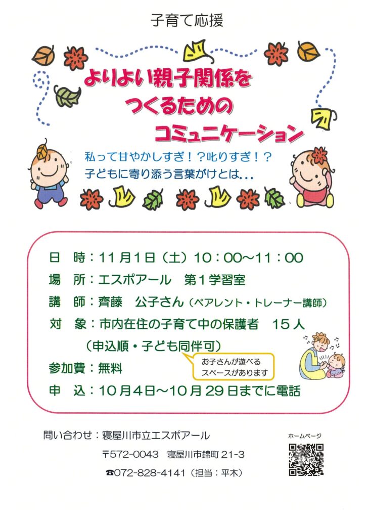 〈子育て応援〉【よりよい親子関係をつくるためのコミュニケーション】  11月1日(土) 午前10時~11時