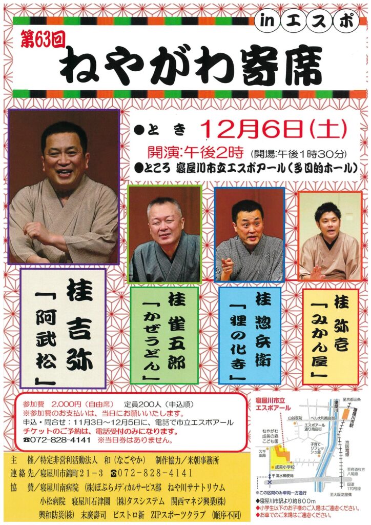 〈ねやがわ寄席inエスポ〉 12月6日(土) 午後2時開演 (開場は午後1時30分)
