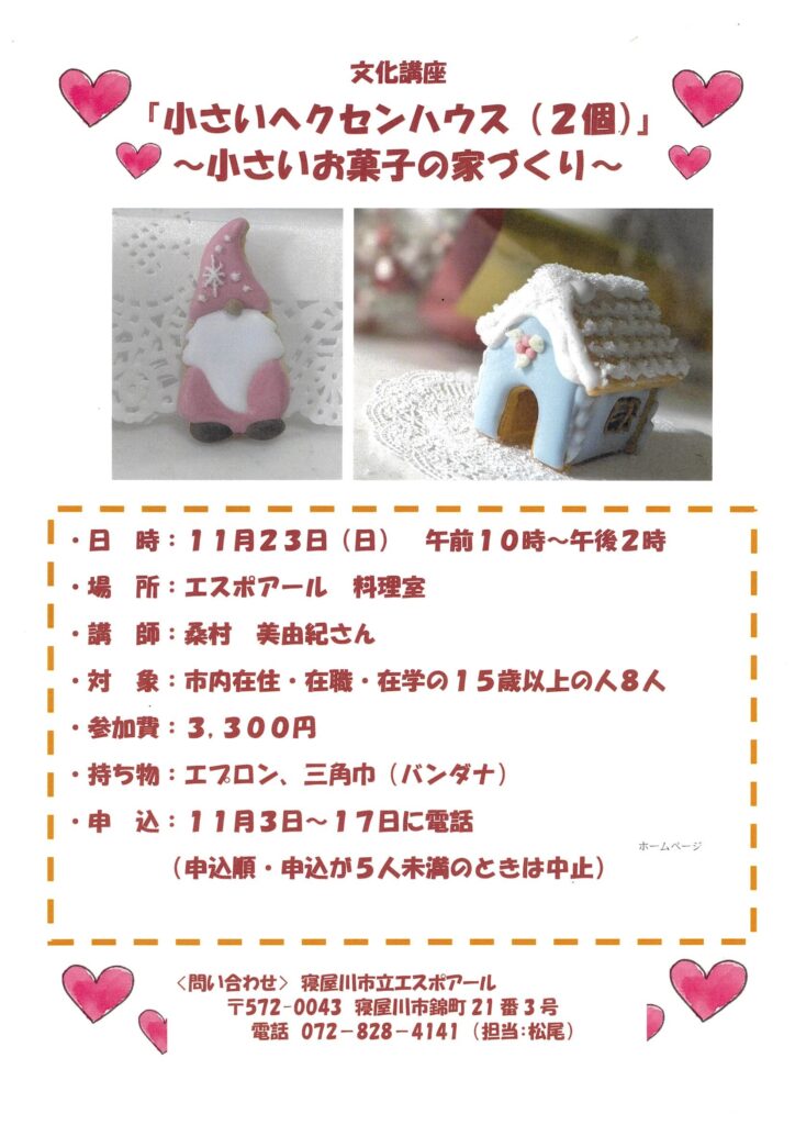 〈文化講座〉【小さいヘクセンハウス】  11月23日(祝) 午前10時~午後2時