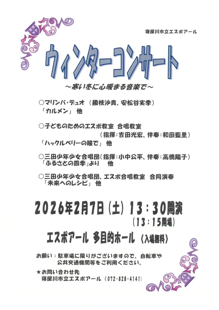 〈ウインターコンサート〉 2月7日(土) 午後1時30分(開場は午後1時15分)